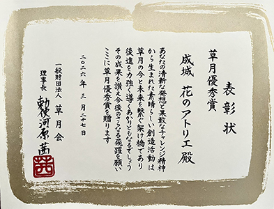 「成城 花のアトリエ」は、昨年12月に開催した「オカムラ×草月」展において「草月優秀賞」を受賞致しました。